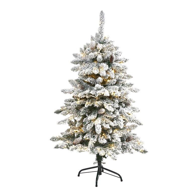 Flocked Artificial Christmas Fir Tree With Clear Lights